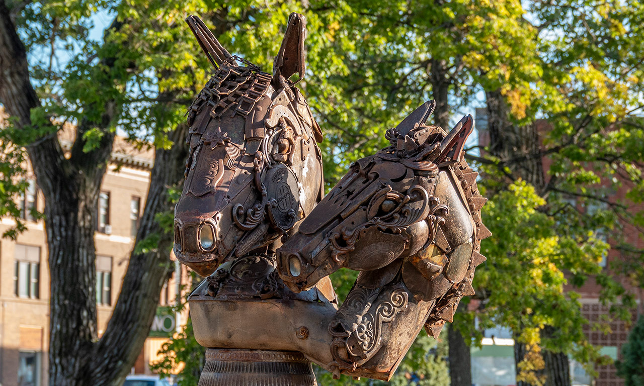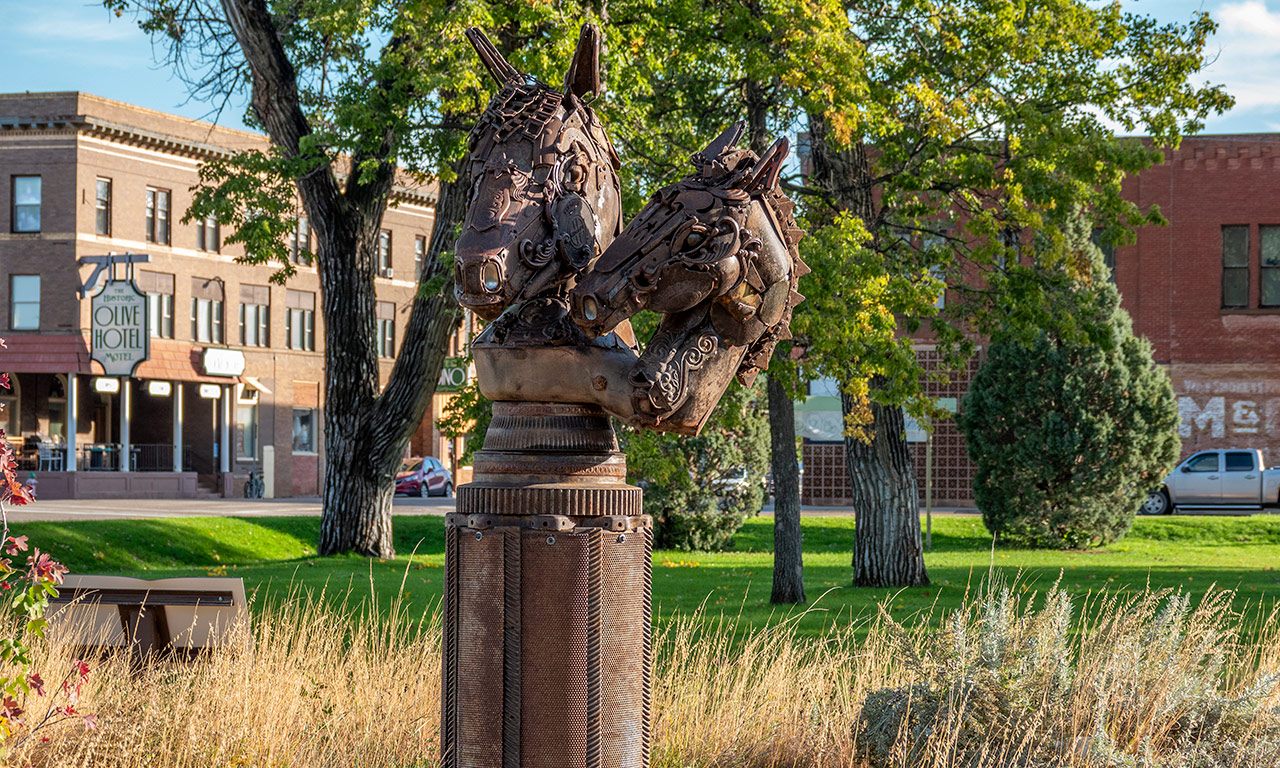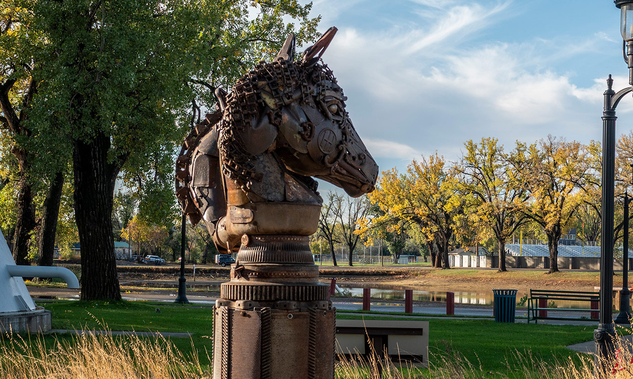 Sculpture is located in RIVERSIDE PARK and created by local business owner & artist Erin Thormodsgard. Completed in 2019.